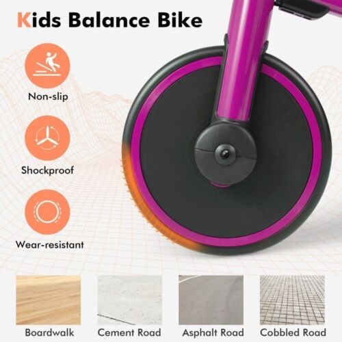 4-in-1 Kids Tricycle Foldable Toddler Balance Bike with Parent Push Handle Pink