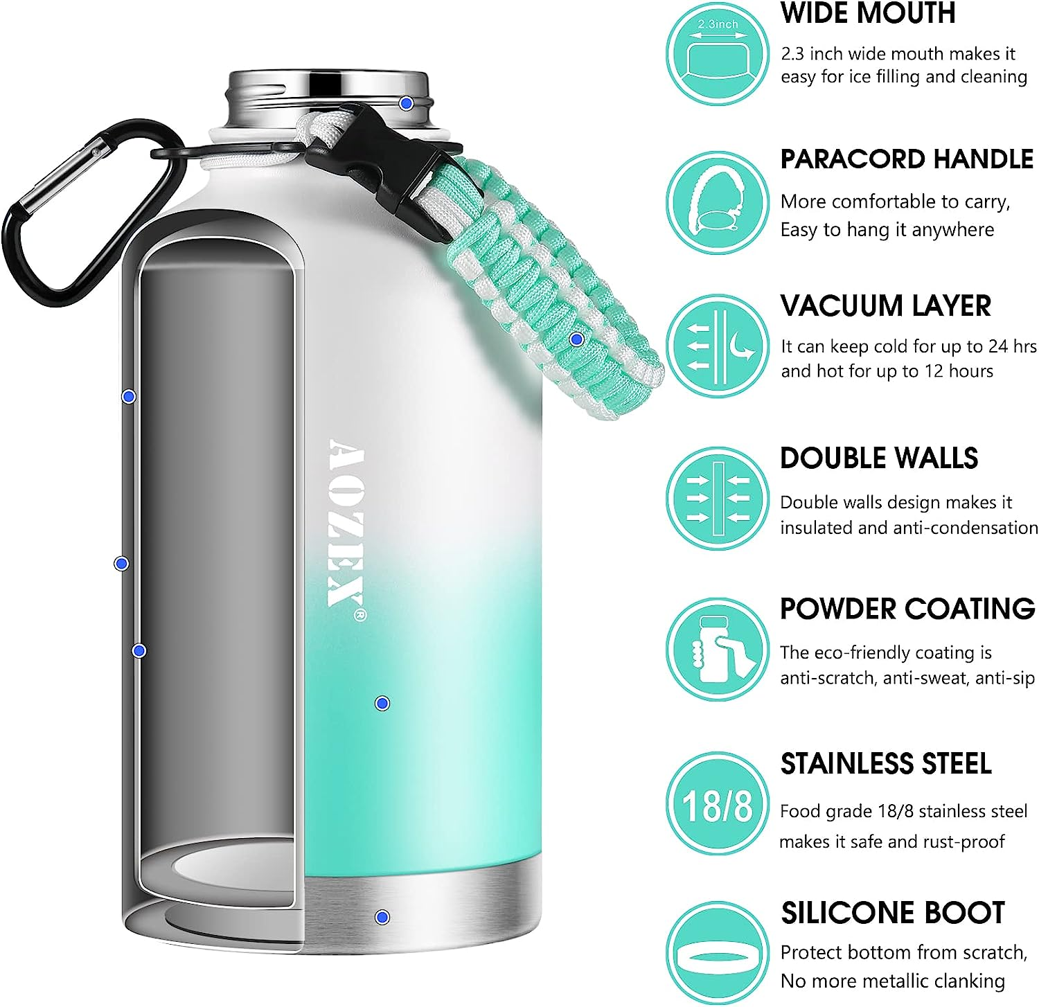 BOTTLE BOTTLE Insulated Water Bottle 64 oz with Straw and Dual-use Lid Half G...