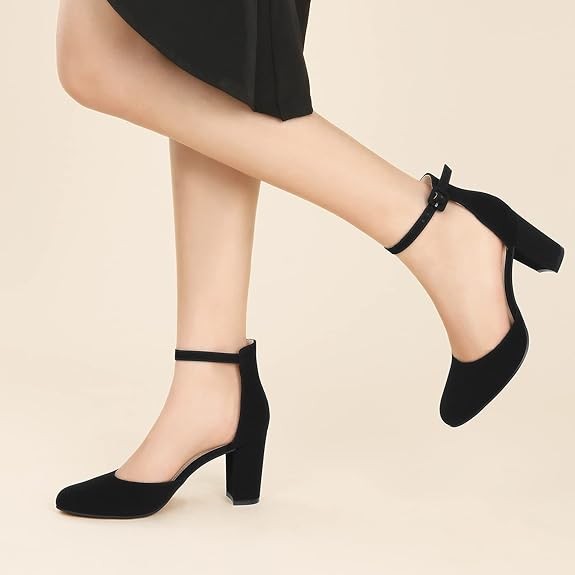Enjoy All Day Comfort While Walking, this Ankis closed toe heels for women was designed with ergonomic 3 Inch high block chunky heels, adjustable ankle strap, soft latex inner insole, thermoplastic elastic sole, safe non-slip sole notch, easier, more comfortable and steady to walk.