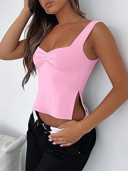 ANRABESS Womens Crop Tank Tops Sexy Sleeveless Sweetheart Neck Backless Side Split Going Out Trendy Y2K Summer Outfits