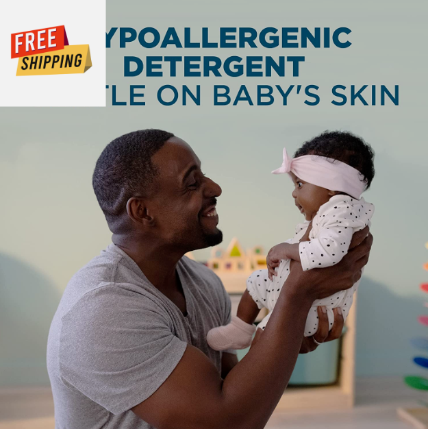 • Pediatrician and dermatologist tested. This hypoallergenic laundry detergent is a great baby detergent for newborns and infants. It’s a liquid washing detergent that’s gentle on delicate skin yet tough on stubborn baby stains