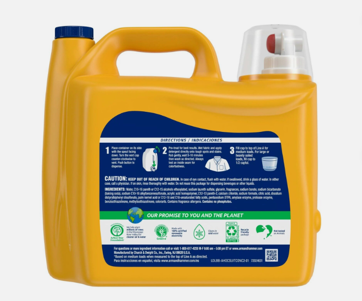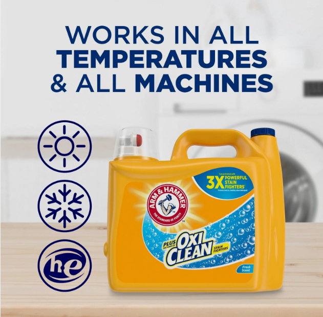 • With trusted ARM & HAMMER Baking Soda plus OxiClean stain fighters, this HE laundry detergent is formulated to deeply clean clothes and deliver lasting freshness