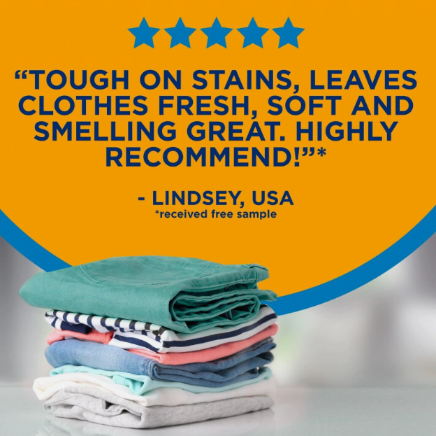 • HE detergent that delivers 5 powerful cleaning benefits in 1: it attacks stains, fights odors, whitens whites, brightens colors and delivers a boost of freshness