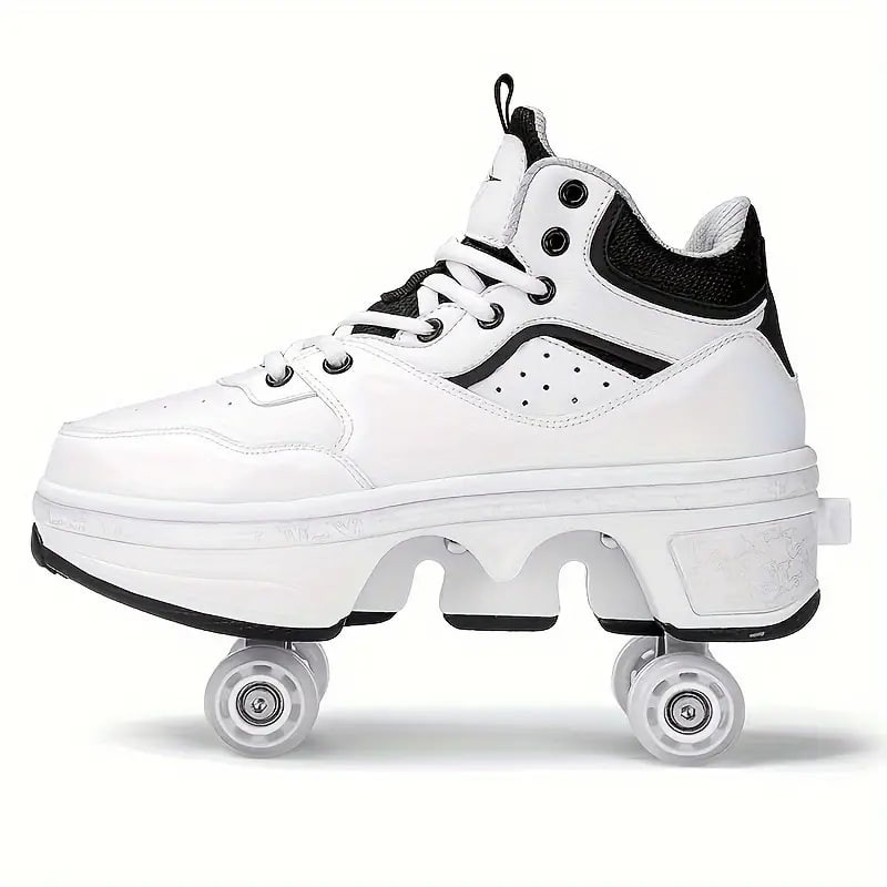 Boy's Trendy High Top Roller Shoes With 4 Detachable Wheels, Comfy Lace Up Casual Skate Sneakers