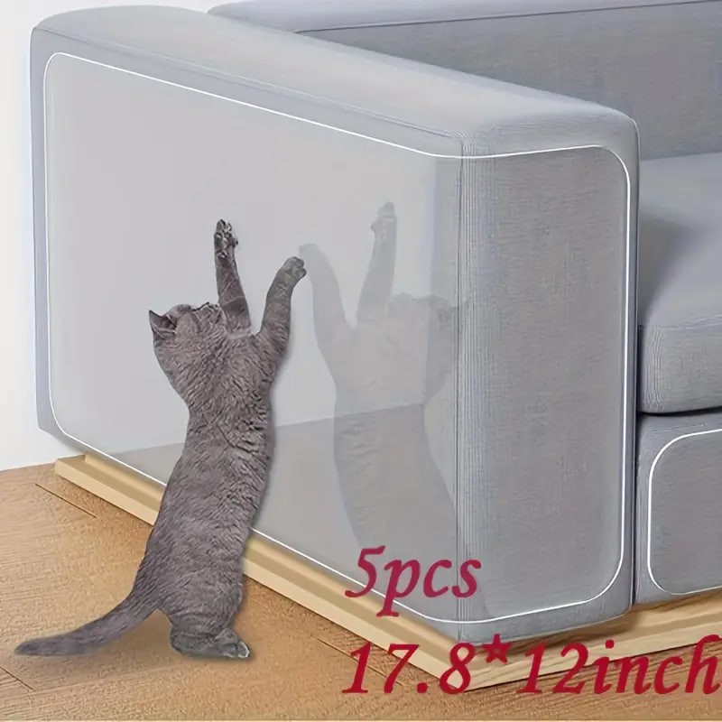 Cat Scratch Deterrent Tape,Cat Couch Protector, Large Double Sided Clear Anti Cats Dogs Scratching Sticky Tape, Can Be Cut Cat Scratch Furniture Protector,Residue Free Protector, 5PACK (17.8x12ins)