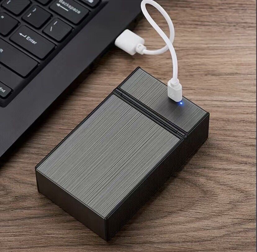Cigarette Case with Lighters Rechargeable Windproof Flameless Portable Regular Size 100's Sli