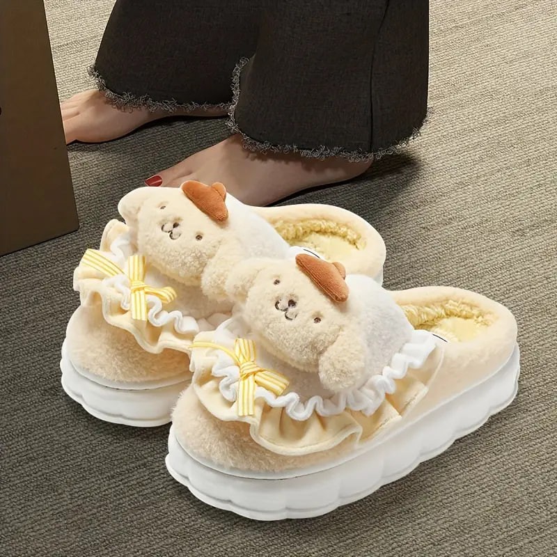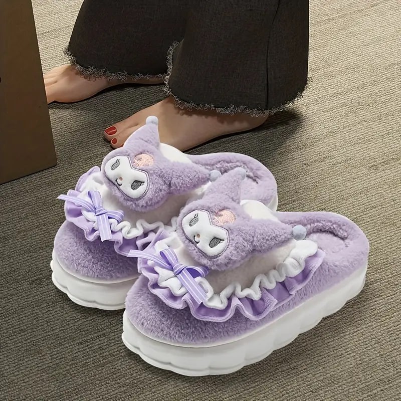 Cute Cartoon Sanrio Kulomi Novelty Slippers, Hellokitty & Melody Kawaii Non-slip Soft Fuzzy Home Slippers, Plush Cozy Shoes