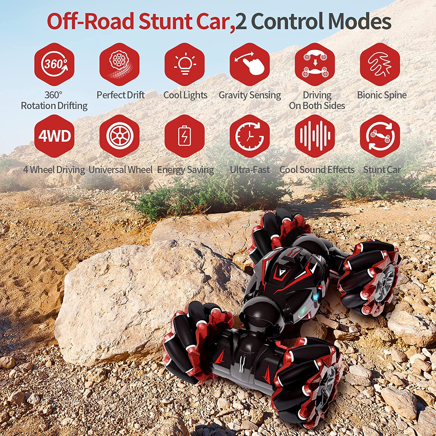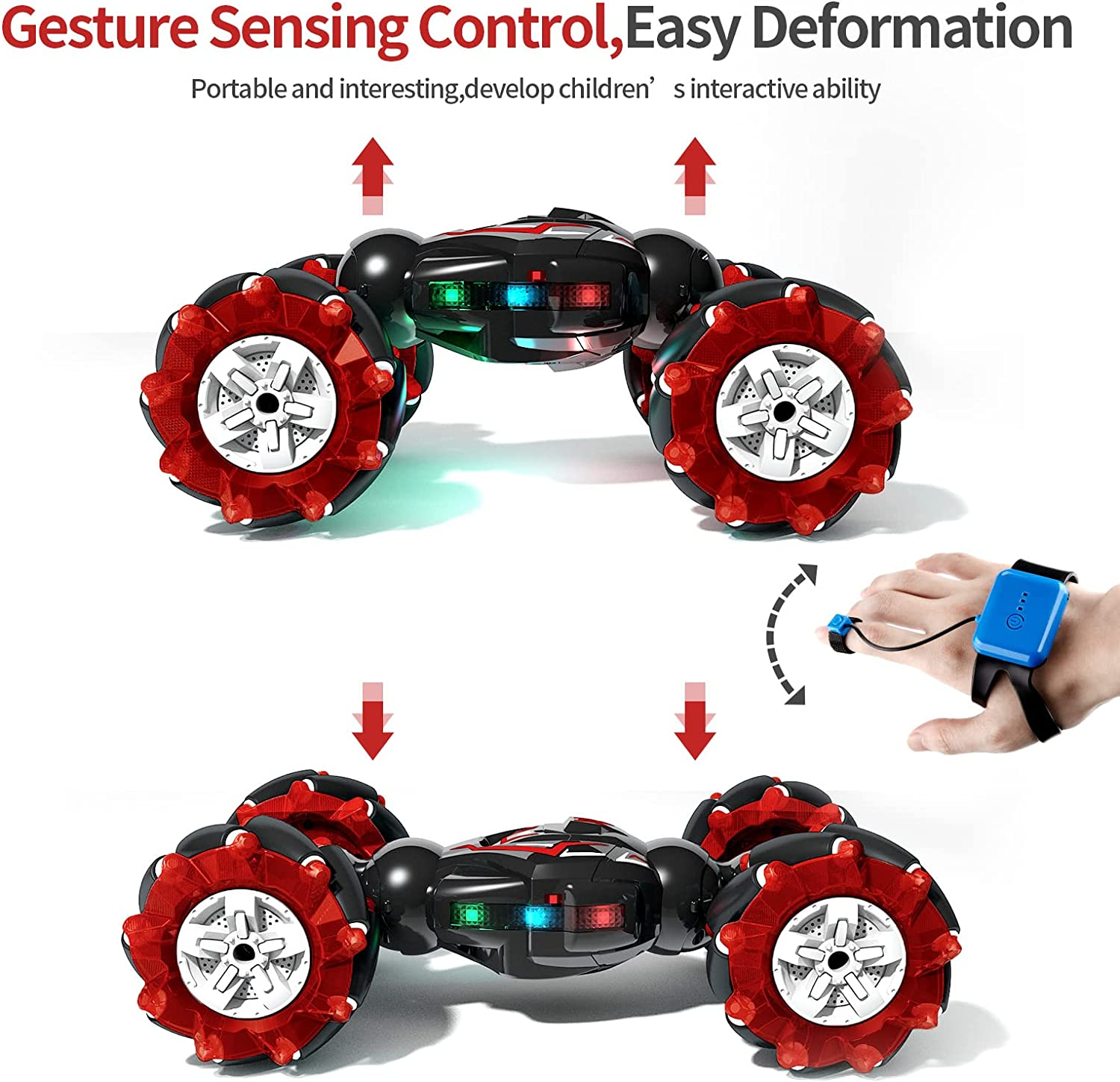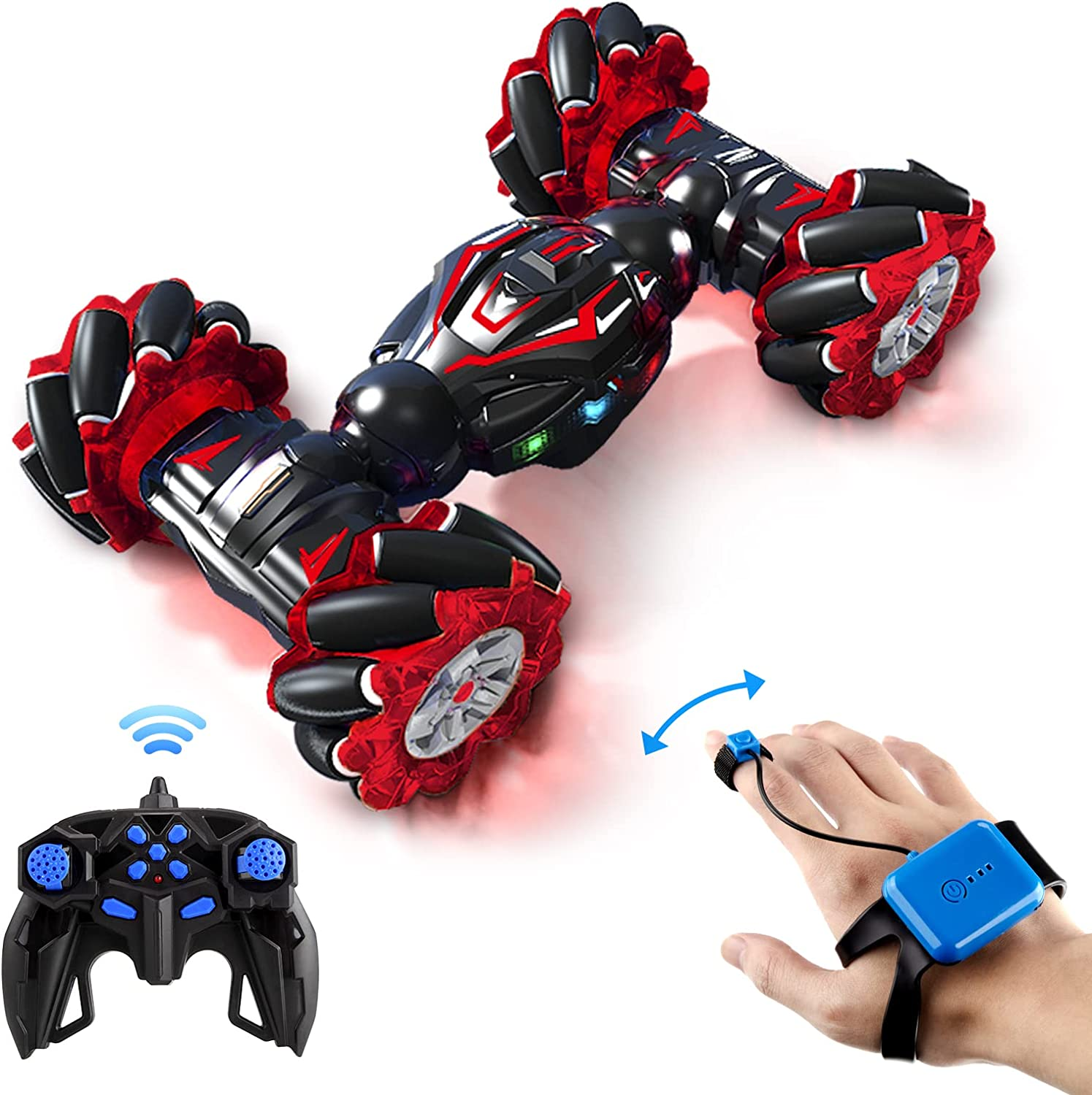 Deejoy Red RC Stunt Car, 2.4Ghz 4WD Remote Control Gesture Sensor Toy, Double Si