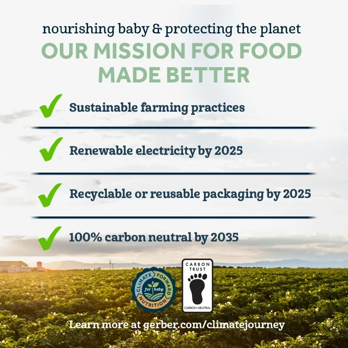 Gerber 2nd Foods Organic Baby Food, Variety Pack Fruit and Veggie Favorites is a delicious combination of fruits and veggie puree pouches that make feeding time easy. Made with produce that meets Gerber’s high-quality standards, this non-GMO, USDA Gerber Organic baby food stage 2 recipe variety pack includes 3 Pear Peach Strawberry pouches, 3 Apple Blueberry Spinach pouches, and 3 Carrot Apple Mango pouches for tantalizing combinations that have no artificial colors or flavors. Each baby food pouch contains 45% daily value of vitamin C. Gerber 2nd Foods help expose babies to a variety of tastes and ingredient combinations. These BPA-free baby food pouches make on-the-go baby meals easy. Refrigerate leftovers for two days. The health and safety of your little one has been and will always be Gerber’s highest priority. We're a leader in infant nutrition, not just because we grow food that will feed your little one, but also because we know what nourishment your little one needs.