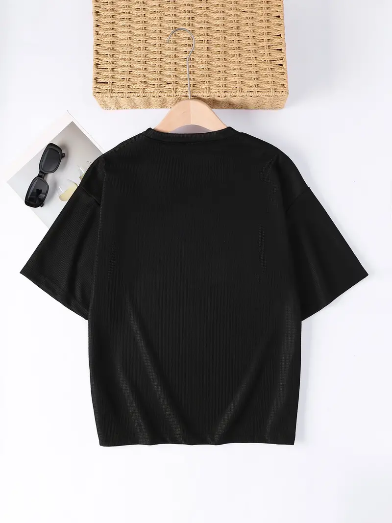 Retro Letter And Striped Men's Loose Casual Cotton Comfy Short Sleeve Crew Neck T-shirt, Summer Outdoor Sports