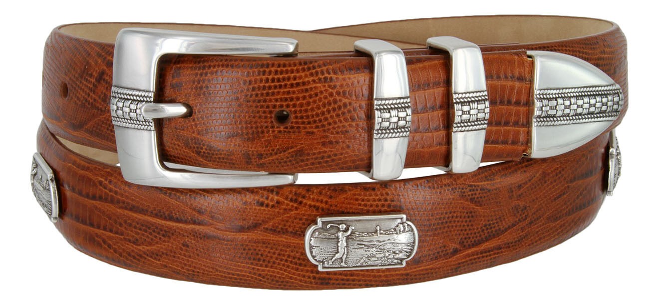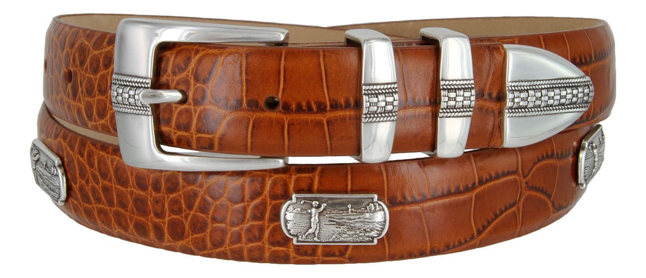 Golf of Scottsdale Men's Leather Italian Calfskin Concho Dress Belt 1-1/8" Wide