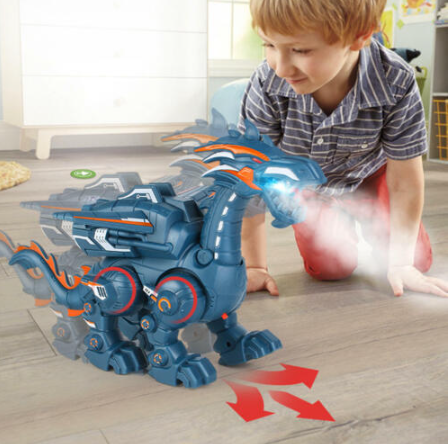 【Interactive Dinosaur Toy】: Growls Walking dinosaur has Technology Machinery Dinosaur appearance. Dinosaur has stunning, dazzling lights that illuminates. It could move, flame spraying, realistic roaring Suitable for family entertainment, but also the children's loyal growth partner.