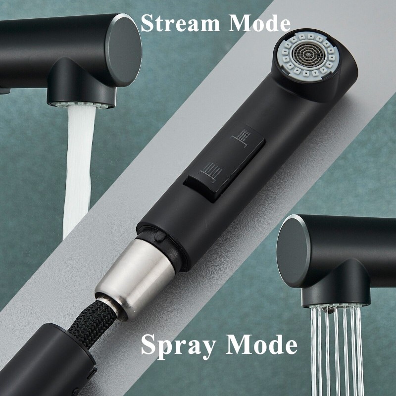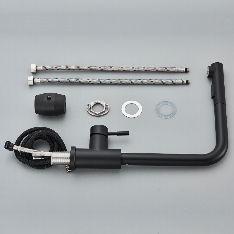 Matte Black Kitchen Sink Faucet Pull Down Sprayer Single Handle Swivel Mixer Tap