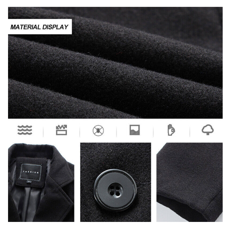 Mens Winter Warm Formal Trench Coat Long Jacket Tops Smart Work Overcoat Outwear