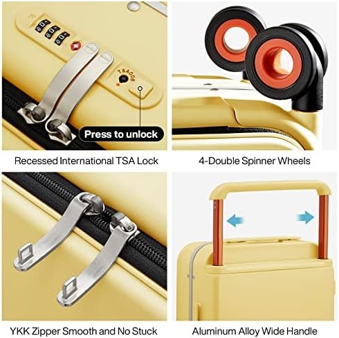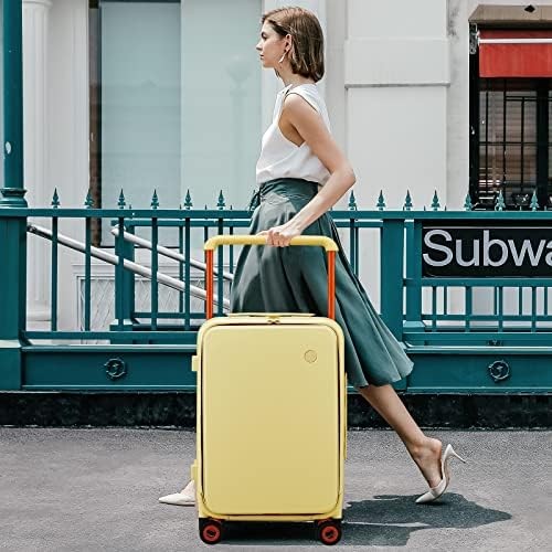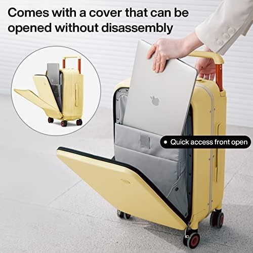 Mixi Carry On Luggage Wide Handle Luxury Design Rolling Travel Suitcase PC Hardside with Aluminum Frame Hollow Spinner Wheels, with Cover, 20 inch, Lark Yellow