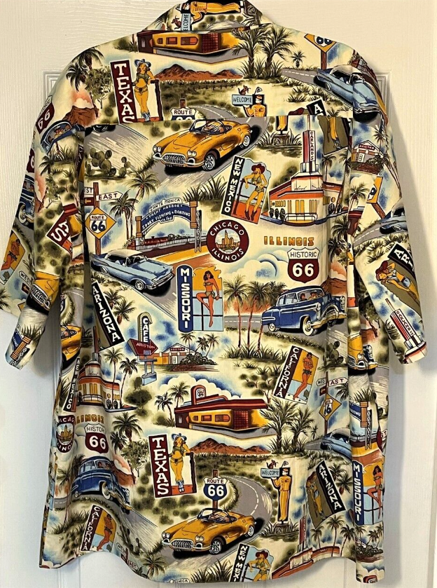 New PACIFIC LEGEND Mens' 3XL S/S Cotton Hawaiian Shirt - Route 66 Print w/Tag
