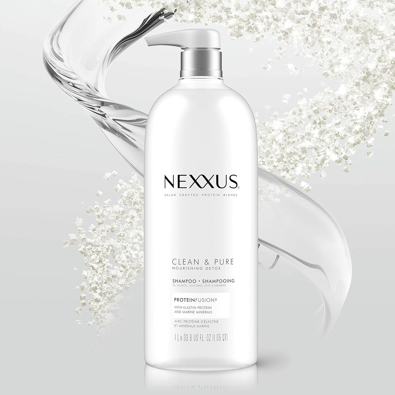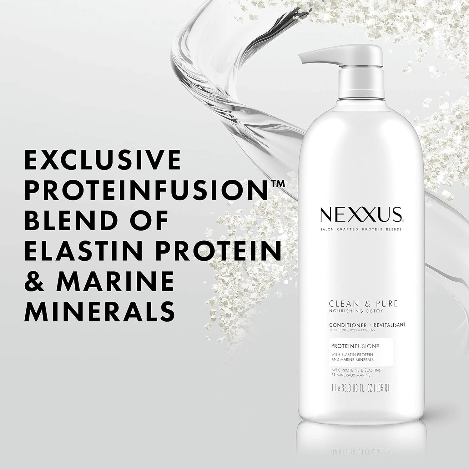 Nexxus Clean and Pure Collection helps recover shine and movement with an exclusive PROTEINFUSION blend of Elastin Protein and Marine Minerals.