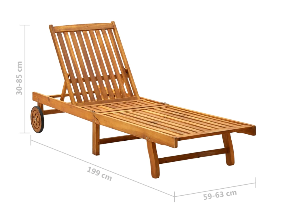 Relax and take a load off in your garden or patio on this comfortable wooden sun lounger! You can spend a relaxing afternoon in your own outdoor space. It is perfect for a pool, balcony, garden, etc. This outdoor sun lounger is made of solid acacia wood, making it sturdy and stable. The backrest and footrest are adjustable, and you can lock the lounger into the desired position. This garden sun lounger can be easily moved around the house with equipped 2 wheels. The sunbed features a convenient pull-out table, to place your phone, sunglasses, drink and other small items. The cushion adds extra comfort for you while lounging. Each cushion features two sets of ropes so that you can fix it on the sun lounger tightly.