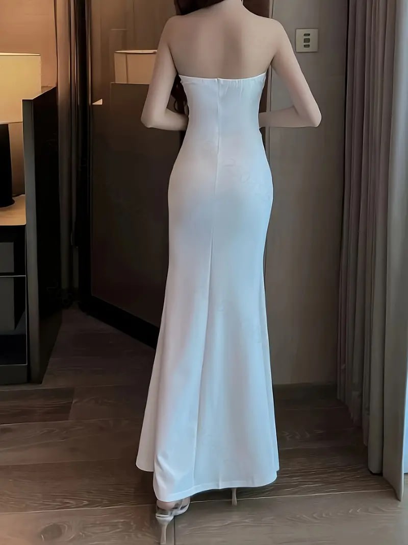 Solid Cut Out Split Thigh Tube Dress, Elegant Sleeveless Strapless Bodycon Dress, Women's Clothing