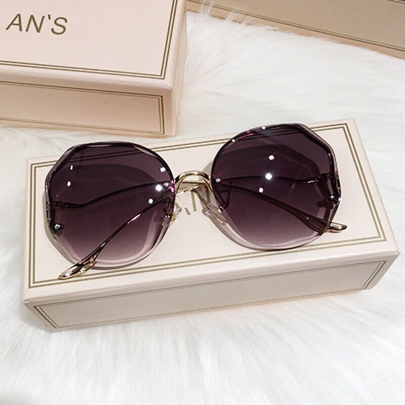 UV400 Luxury Rimless Sunglasses Women Ladies Fashion Oversize Gradient Shades