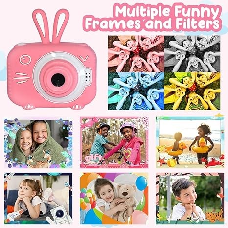 • ?【1080P HD IPS Screen】This children selfie camera is equipped with 8x digital zoom + dual front and rear camera, and equipped with a 2 inch 1080P IPS screen, 12.0 MP and 2000W pixels. Compared with other kids camera, the clarity of the photo is greatly improved. Support self-timer, it can shoot up to 1920x1080P photos and videos. With 28 Frames and 11 Filters can be chosen to help the kids get different experiences for photographing.