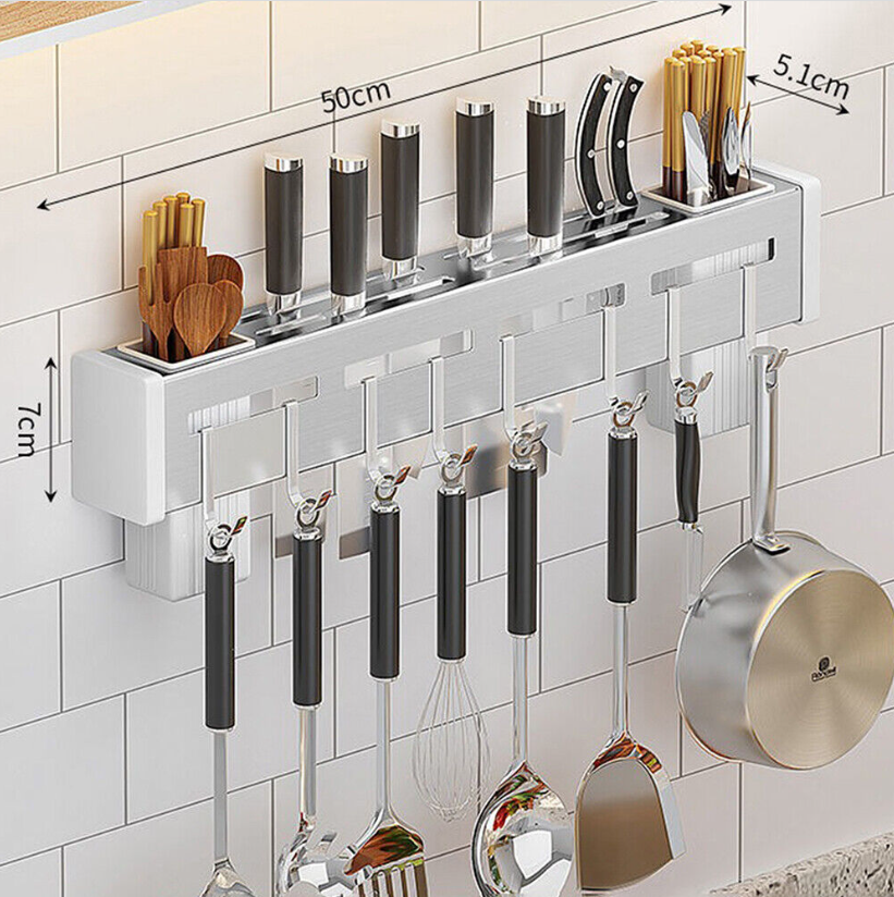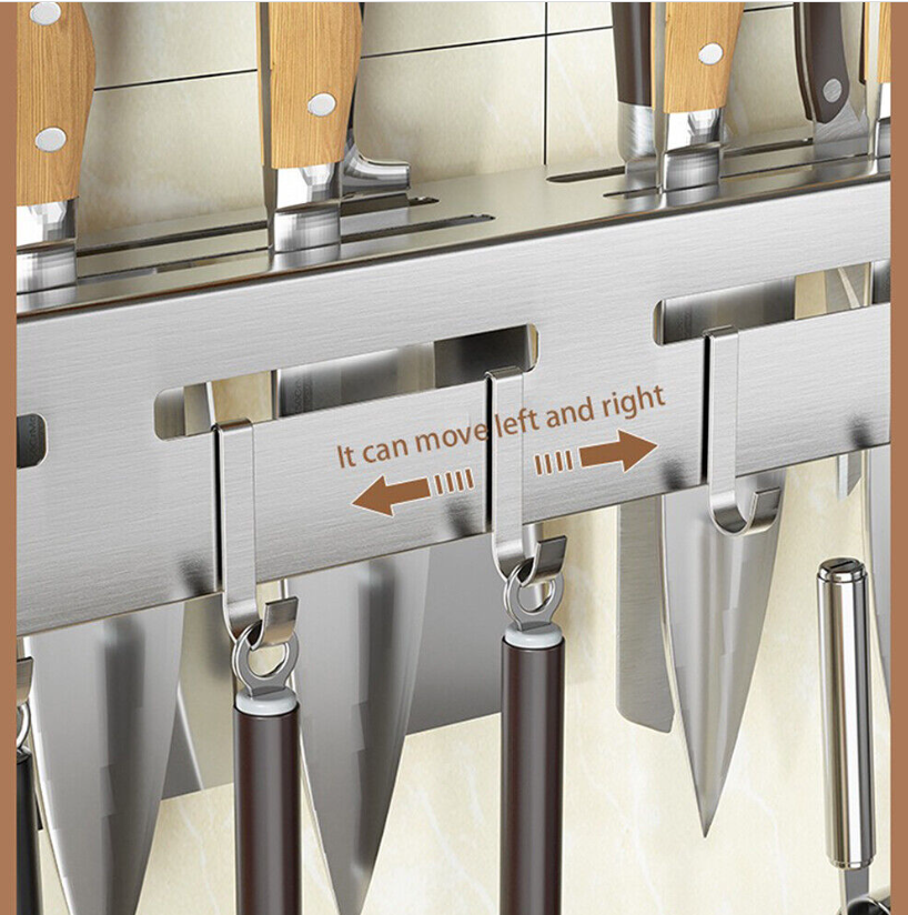 Wall Mount Knife Storage Holder Hanging Rack Kitchen Tool Household Stainless