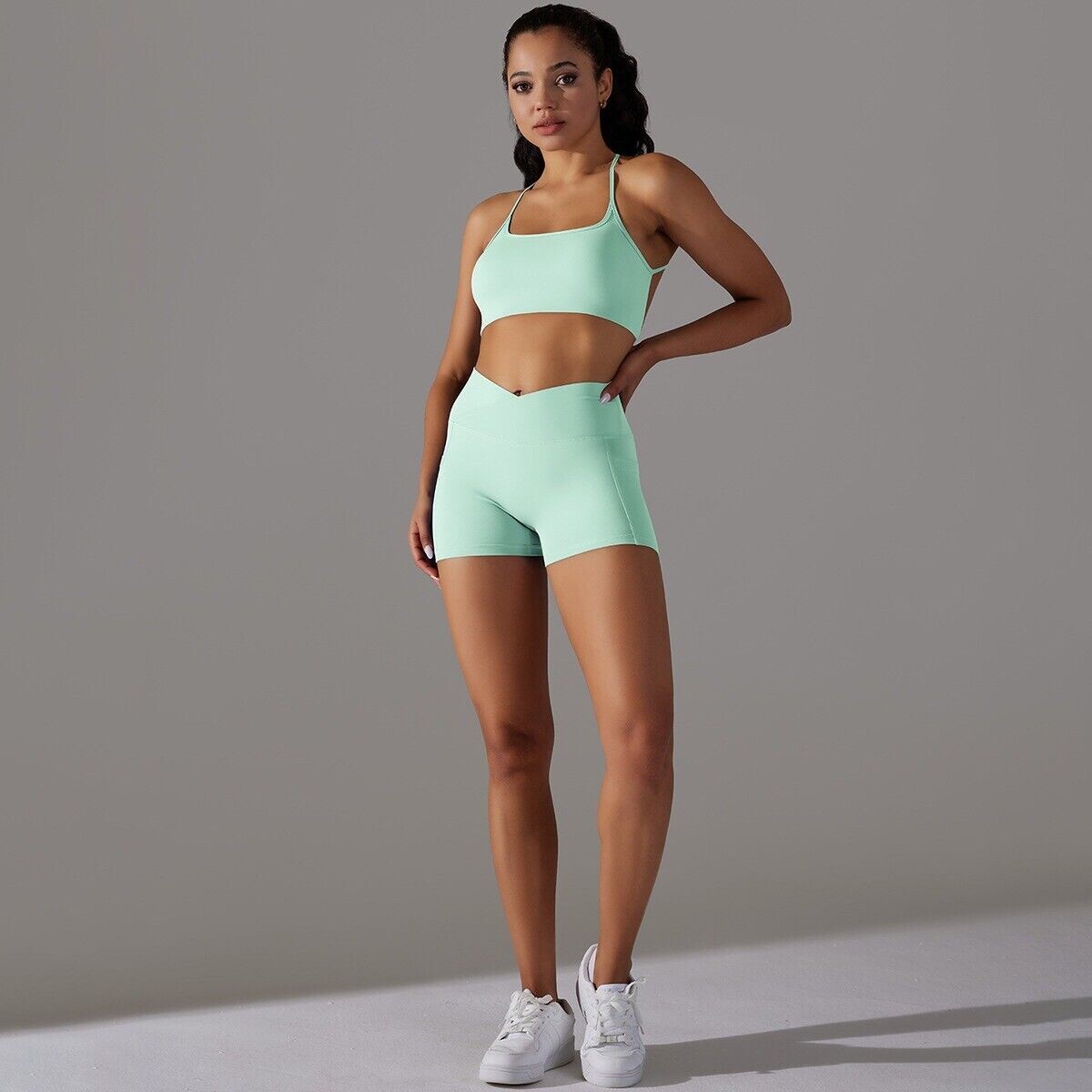 Women's Workout Sets 2 Piece Yoga Outfits Yoga Shorts and Sports Bra Gym Clothes